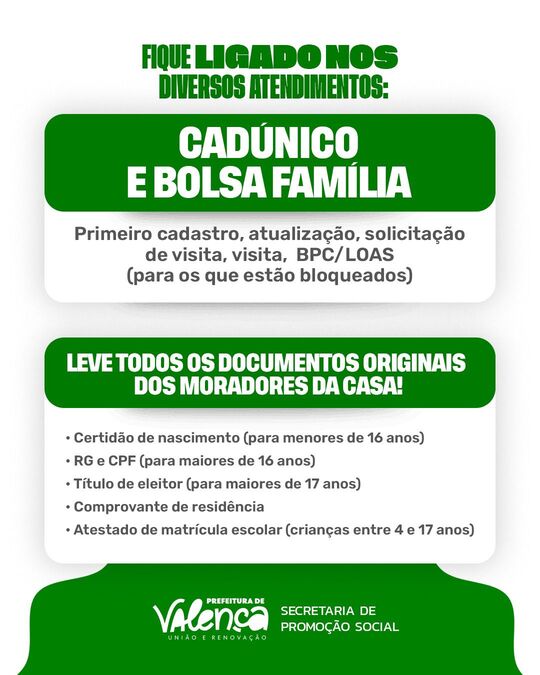 A Prefeitura de Valença, através da Secretaria de Promoção Social leva cidadania e cuidado até você! 💙