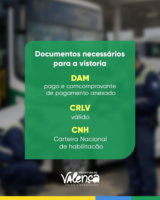 📑 Documentos necessários para a vistoria: