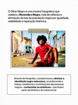 Valorizar e dar visibilidade à negritude de Valença através da arte fotográfica é o objetivo da Mostra Olhar Negro, iniciada pela Secretaria de Mulheres e Reparação Social através da Diretoria de Diversidade e Reparação da Prefeitura de Valença. A Mostra divulgará nas redes sociais e selecionará 20 imagens para uma exposição itinerante no mês de novembro, o Mês da Consciência Negra.