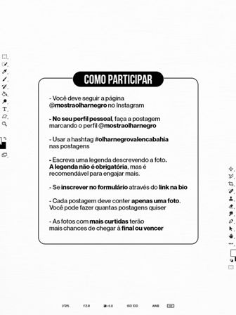 Qualquer pessoa moradora da cidade pode participar da Mostra enviando fotos atuais ou antigas, seja do cotidiano e trabalho de familiares, amigos e vizinhos, ou de manifestações artísticas e sociais. Basta ter uma conta no Instagram, seguir a página @mostraolharnegro, postar a foto compartilhando com o perfil da Mostra e incluir a #OlharNegroValençaBahia.