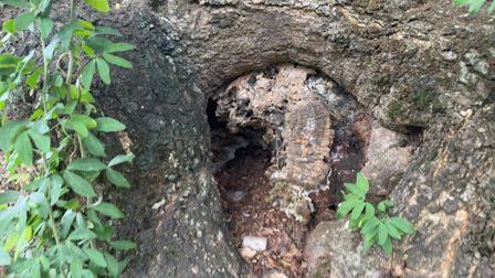 📸 As imagens acima mostram a realidade: por fora, algumas árvores ainda aparentavam vitalidade; por dentro, estavam seriamente comprometidas, oferecendo risco iminente de acidentes.