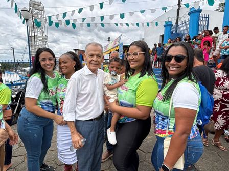 Durante as celebrações, o prefeito Marcos Medrado conversou e fez fotos com a população, demonstrando carinho e proximidade com a comunidade valenciana.