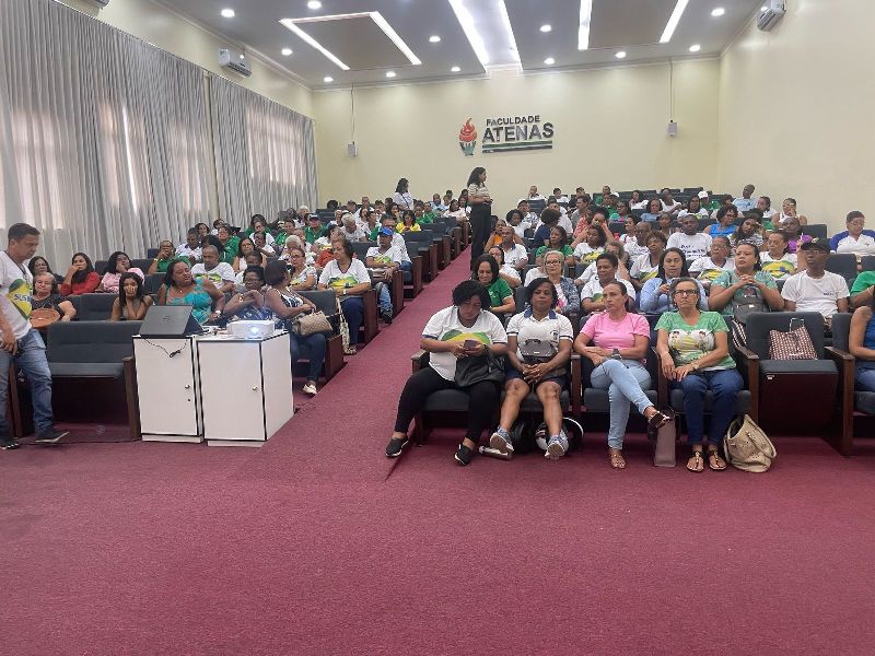 Nesta segunda-feira (24), no auditório da Faculdade Atenas, os Agentes Comunitários de Saúde (ACS) participaram de uma capacitação focada nos indicadores do novo modelo de financiamento da atenção primária à saúde, com ênfase no vínculo e no acompanhamento dos cidadãos.