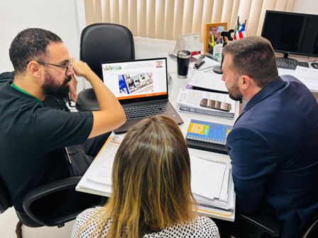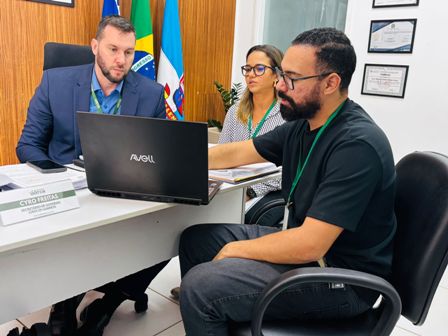 Participaram da reunião, o arquiteto Michairo Vieira, a diretora da Defesa Civil, Tharcila Brito, e o secretário de Governo e Chefe de Gabinete, Cyro Freitas.