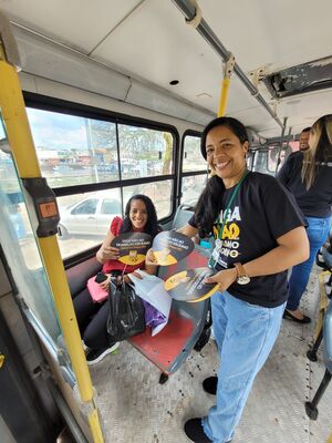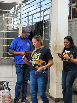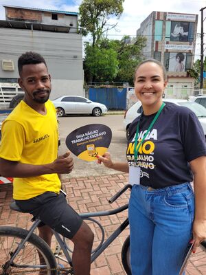 Durante a ação, a população recebeu orientações, informações e participou de diálogos sobre o enfrentamento ao trabalho análogo à escravidão, a importância das denúncias e o papel da rede de proteção social na garantia de direitos.