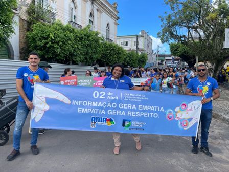 Na manhã desta sexta-feira (4), o centro de Valença foi palco de uma grande caminhada em apoio à campanha Abril Azul, pelo Dia Mundial da Conscientização do Autismo. O evento foi promovido pela Secretaria de Educação em parceria com a Associação de Pais e Amigos dos Excepcionais (Apae), a Associação de Pais e Amigos dos Autistas (AMA) e a Associação Pestalozzi de Valença.