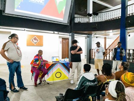 A representante territorial de Cultura do Baixo Sul, Jhessy Coutinho, conduziu a atividade e destacou a importância do processo participativo: “A escuta pública é uma etapa imprescindível da Política Nacional Aldir Blanc. A lei é clara: não se pode utilizar os recursos sem garantir a participação popular. Hoje estamos aqui em Valença justamente para ouvir artistas, fazedores de cultura, povos de terreiro, grupos de dança, teatro, capoeira e pontos de cultura, assegurando que as demandas do território sejam consideradas de forma democrática e transparente. Essa política é estruturante e precisa chegar a quem realmente necessita para desenvolver projetos culturais.”, disse.