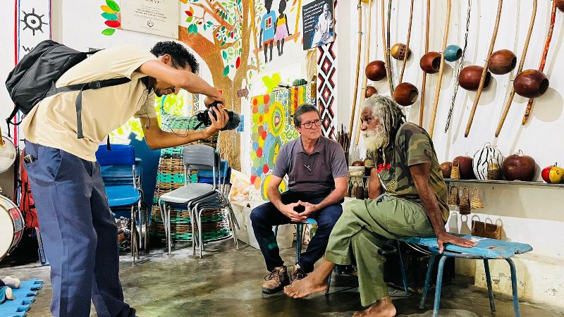 Jaonickson Clabus Cubose é natural de Guinea-Bissau, país da África ocidental, e foi convidado pelo Mestre Cobra Mansa para ministrar oficina sobre um instrumento africano conhecido por Bombolom, basicamente, um tambor de fenda construído a partir de um tronco de árvore, tradicionalmente usado em manifestações sócio-culturais de seu país. Ele explica que, para o seu povo, “os toques são mensagens que desempenham funções de comunicar”.